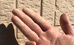 外壁に手で触れると白い粉がついてくるのは劣化のサイン。塗り替え時期です。